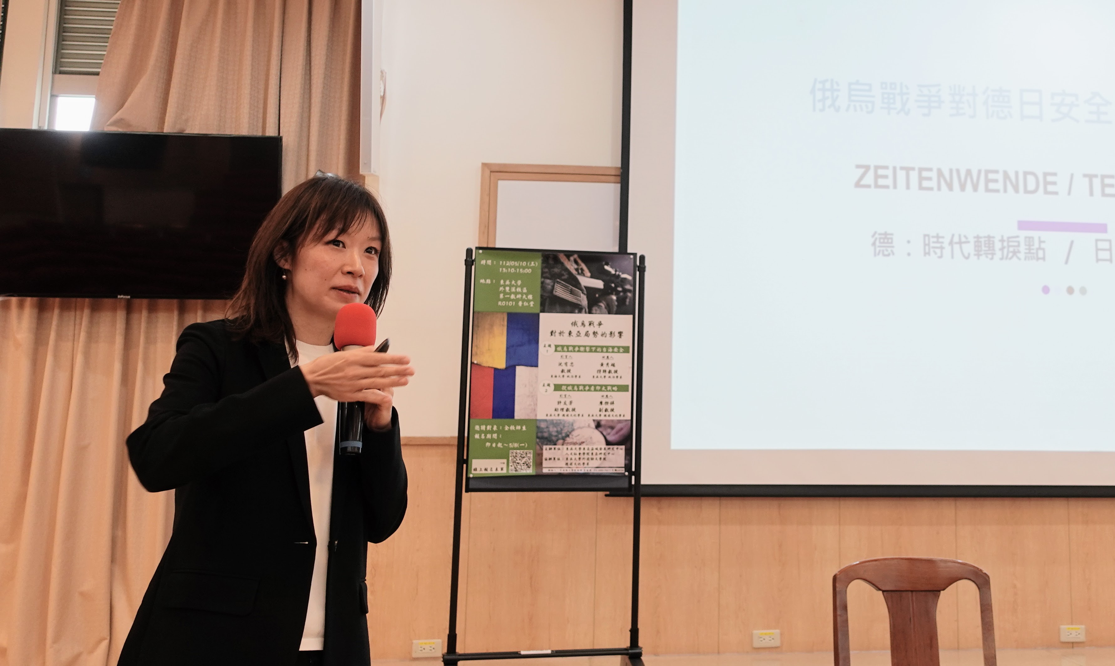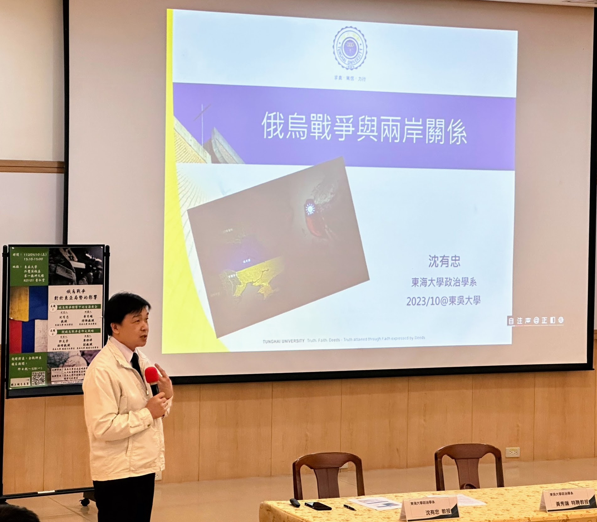 2022年2月起,俄烏戰爭持續至今超過400天,「今日烏克蘭,明日台灣」一言在台廣為流傳。究竟台灣是否會成為下一個烏克蘭?本校東亞區域發展研究中心、人文社會學院東亞研究中心、外國語文學院與德國文化學系特於2023年5月10日,在外雙溪校區普仁講堂聯合舉辦「俄烏戰爭對於東亞局勢之影響」座談會,邀請東海大學沈有忠教授、本校政治學系黃秀端特聘教授、德國文化學系廖揆祥副教授和許友芳助理教授,一同探討俄烏戰爭對於台海安全及印太戰略的影響,並從政治、經濟、國際合作等各層面探討台灣目前的處境。