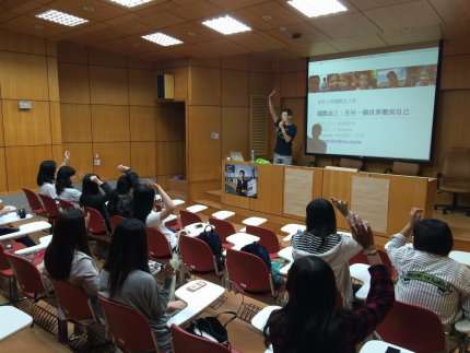 5月18日本校國際志工社社員們齊聚一堂,聆聽簡嘉信學長的體悟與分享,為暑假的國際志願服務工作做準備。