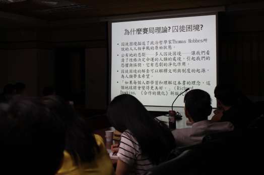 本校政治學系於5月23日午間在雙溪校區舉辦講座,邀請到目前任教於美國德州大學奧斯汀校區政府系的林澤民教授,與同學談談何為囚徒困境與賽局理論,並且從電影、生活與電視節目中找尋例子,將理論運用於實際。