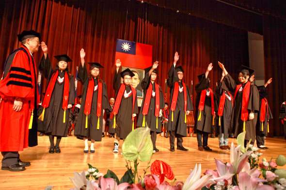 六月蟬鳴,鳳凰花開,期待展翅,對於未來,我們準備好了,因而舉杯;致我們的未來!本校於105年6月18日(六)至19日(星期日),在外雙溪校區傳賢堂,依學院分別兩天舉辦6場104學年度的畢業典禮,首日登場的是人文社會學院、理學院與商學院。