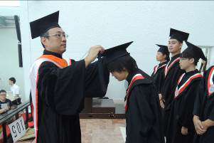畢業典禮莊嚴而隆重,在張怡塘系主任對畢業生的勉勵與祝福中展開序幕,接著由系主任為每位畢業生進行撥穗禮,代表在本系順利完成學業。接著頒發本屆大學論文競賽優勝作品,包括金、銀、銅牌及佳作共計9位畢業生獲得殊榮。