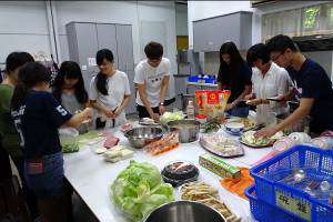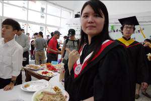 歡慶茶會緊接在畢業典禮之後,茶會布置在安素堂的外廳,每道美味佳餚都是學系與在校生共同規劃與親手製做。現場也擺設多樣手工製作的精美畢業道具,正是畢業生在微生物學系生活點滴的縮影。畢業生齊聚在此說說笑笑,與在校生話別,久久不願離去。