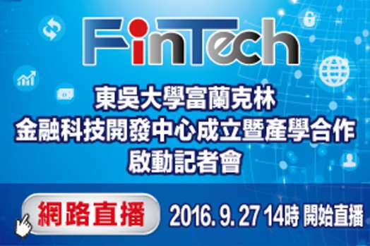 東吳大學商學院長期在金融實務與理論發展深耕研究,東吳大學商學院與富蘭克林證券投資顧問(股)公司進行產學合作,訂於105年10月3日(星期二)下午2時到3時30分,於城中校區游藝廣場,舉辦《東吳大學富蘭克林金融科技開發中心成立暨產學合作啟動記者會》,宣示正式展開金融科技(FinTech)的跨域創新研究與實務應用,希望結合商學院的經典研究內涵與最新的金融科技發展實務,培育未來的金融專業人才,同時鼓勵學生創業,為國內的金融科技創新貢獻心力。