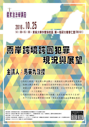 10/25東吳大學嚴家淦法學講座馬英九教授演講 「兩岸跨境跨國犯罪現況與展望」