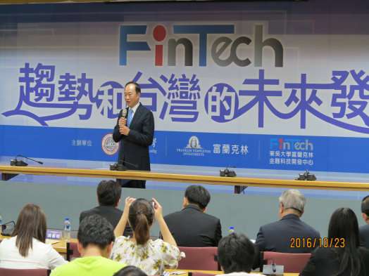 繼10月3日「東吳大學富蘭克林金融科技開發中心成立暨產學合作啟動記者會」後,本校與富蘭克林證券投資顧問(股)公司於105年10月23日(星期日)下午2時到4時,在雙溪校區國際會議廳,舉辦《FinTech趨勢和台灣的未來發展研討會》。