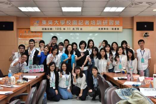 秘書室於11月19日舉辦「東吳大學校園記者培訓研習營」,活動中邀請到本校英文系歐冠宇老師及三立新聞台資深國際記者范逸華,前來傳授新聞報導的核心原則及影音製作技巧。下午的活動則是由編輯群帶領,分為影音組、文字組和英文組等課程,訓練記者群的專業能力。
