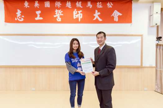 2016東吳國際超級馬拉松志工誓師大會,於11月23日晚間6時30分在外雙溪校區普仁堂盛大舉行,此次誓師大會除了勉勵志工達成志工任務的決心,同時也介紹今年東吳超馬的特色,此外,亦安排來自馬來西亞的「腦麻生命鬥士」曾志龍分享他的跑步人生,藉此激勵東吳超馬志工。