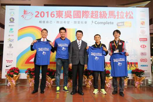享譽國際的「2016東吳國際超級馬拉松賽」將於明日12月3日登場, IAU總會代表日本領隊井上明宏、2017台北世大運學生資源處吳金盛處長、瑞士銀行台灣區總經理陳允懋,以及中信兄弟職棒明星王勝偉及張志豪,皆在記者會上為明日的賽事予以支持與鼓勵。