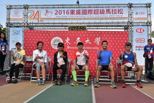 2016東吳24小時國際超級馬拉松賽,共有來自世界各國的42位選手參與盛會,其中有24位為台灣選手。今年賽事成績,男子組前10名中有7位是台灣選手,女子組前10名中也有4位是台灣選手,相較往年,整體成績有了明顯的提升,值得喝采。