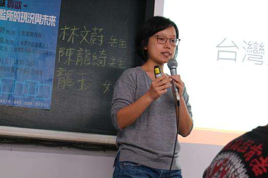 龍玉女士是一位社工,他從外圍的旁觀者角度切入,以監所關注小組所做的報告,向大家提供他們對於監獄環境和政策方面的建議。「想像一下如果是你住在這裡,衛生、醫療、心理健康、戒護流程、工作勞動等等都會是你想關心的事項,但其實在監所裡,最重要的還是錢。」龍玉說明調查結果:「如果有家人能夠提供經濟方面的幫助,那會過得舒服些,但是很多人因為一個月的作業金所得普遍低且分佈不平均,常常一個月不到300元的收入,而收容人需要應付每月最低開銷為台幣1200元至2000元。」再加上監所醫療資源的匱乏和矯正體系的不足,讓她對於監所是否能夠真正提供受刑人賦歸社會的銜接產生疑問。