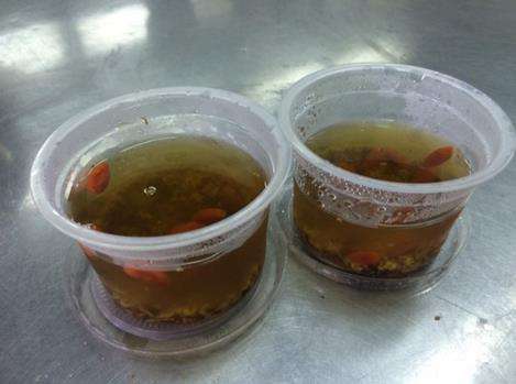 要嘗到甜蜜蜜的桂花糖之前,必須進行細心與眼力的大考驗。首先,將乾燥桂花過篩,把其中的碎屑、小石頭和花梗挑去,接著鋪上等比例的冰糖和細砂糖,放置瓷碗再拿到電鍋中蒸煮。萬同學說,手作過程雖然花時間,但中式甜點的每道功夫都不能少,精心處理過的桂花口感較佳,搭配冰糖更是清新宜人。
