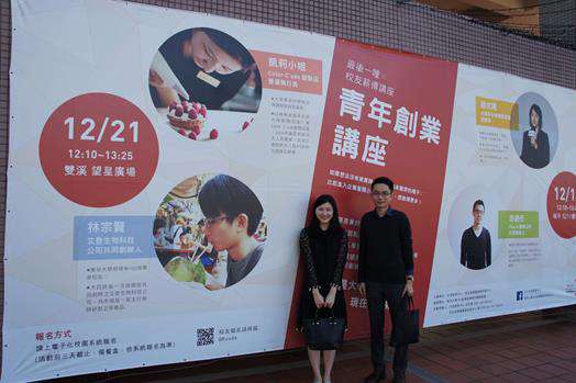 本校最後一哩校友薪傳講座於105年12月21日在雙溪校區望星廣場舉行,由生涯發展中心和校友服務暨資源拓展中心主辦,邀請到Color C’ode甜點店營運執行長凱莉小姐以及艾登生物科技公司共同創辦人林宗賢先生一同來到校園,暢談自己在創業這一路上的收穫感想。