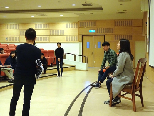 模擬面試階段,由蔡經理擔任面試官,兩位自願面試者來自地主隊本校企管系的黃同學及銘傳大學國際企業學系的女同學。蔡經理向大家解釋,在面試開始時,面試官通常會利用面試者短暫自我介紹的時間來閱讀履歷,因此履歷一定要簡明扼要、寫的有重點,千萬別把身高、血型、星座等一並附上。他還表示,面試者的「失敗經驗」會是他很有興趣的部份,若能在失敗有所學習,必能替自己印象加分。同時,也提醒大家,若在面試中被問到對公司有哪些意見或想法時,有自信地提出新點子是好事,但切勿過於自信、過度偏激的評論該面試公司,這樣的行為很令面試官感冒,需多加留意。