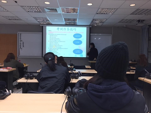 最後,語言中心的施雅俐老師也再次強調,考前的練習便是經驗的累積,不僅是讓自己瞭解問題的癥結所在,亦是為正式上場時能發揮十足實力的最佳保證書。本校外語自學中心備有紙本模擬教材,可供全校同學仿真練習,不必往外求取相關資源,相當方便。此外,亦設立Easy test平台,可供時間較難配合的同學進行線上測驗;而雙溪校區外語自學室每學期也將提供五週的短期課程,更於每月舉辦一次模擬試作會,歡迎同學們踴躍報名,為自己的未來爭取多一份保障。