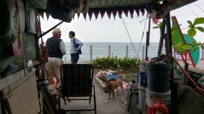 「東吳第3哩‧讓愛轉一起」單車環島活動第十天騎到花蓮與「老人暨家庭關懷協會」(下簡稱老家)一同進行愛心公益活動,探訪吉安地區的獨居老人並帶給他們日常物資,其中即有一小隊負責探望住在小寮房的爺爺。很難相信在這樣克難的環境下,爺爺的家當依舊整齊的擺放著,沒有想像中的雜亂不堪,甚至在寮屋的一隅還有間乾淨的教堂,能夠進行禮拜。