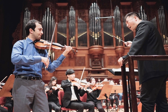 「為什麼大家都看得懂五線譜,有的演奏能令人感動,有的卻讓人覺得他在背譜?重點在於,他們有沒有一個好老師,帶著他們發光發熱!」彭主任引言結束後,本校音樂系管弦樂團便以貝多芬的第三號〈雷奧諾拉〉序曲開場。緊接著,眾所矚目的海克登場,帶來了西貝流士的經典小提琴協奏曲:D小調小提琴協奏曲,其中,豐富的樂團與獨奏對話、強烈的節奏都帶給觀眾空前的聽覺享受。