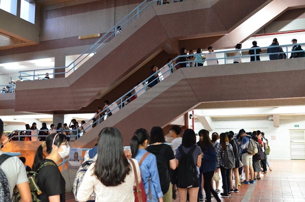 5月15日下午六點正式開放入場前,等待入場觀劇的觀眾們早已在傳賢堂外大排長龍。而井然有序的驗票、取票程序以及疏導人員的妥善指導,更讓觀眾一個個能順利的進入戲劇會場,不難看出音樂劇表演社對於此次公演的用心,以及專業。
