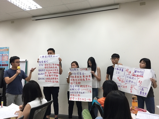在兩日的震撼洗禮之下,最後讓學生們發表兩日以來所討論出來的商業模式,以實際操作的方式來做課程的驗收,每個小組皆提出了許多十具創意的新點子。偉賢老師也鼓勵大家多方地嘗試並且實際的操作,若遇任何需要幫助的地方,他很樂意全力的幫忙,也鼓勵同學可以到九月即將開幕的東吳創新創業基地報名參與,一同努力。