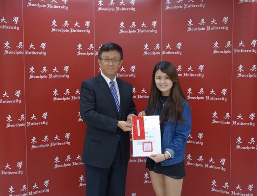 董副校長致詞時提到僑生及外籍生在人生最精華的階段,選擇來台就讀東吳大學,過程中必然有著眾多的酸甜苦辣回憶,但也唯有這樣的經驗,才能讓自己成長,並反饋在自己未來的人生道路上,成為繼續向前的動力。陳惠芳副院長則希望透過商學院僑外生的傑出表現,在返回自己僑居地後,成為最有力的宣傳動能,讓更多來自不同國家的學生知道百年歷史的東吳大學。在祝福話語後,董副校長亦頒發「僑務委員會105學年度應屆優秀畢業僑生獎學金」予來自香港、澳門、馬來西亞及日本的9位應屆畢業優秀僑生。