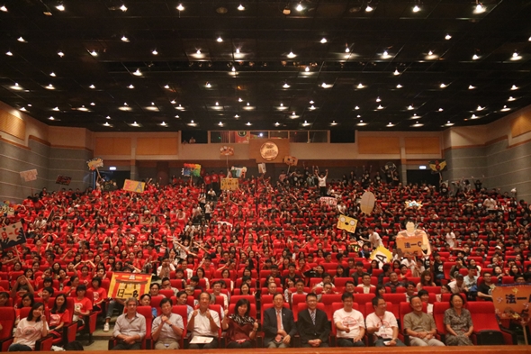 今(14)日來到第四天,在下午的班級競賽上,新生們充分展現彼此的團隊默契及創意,讓現場師長驚呼連連。於校歌創意競賽中,各班級紛紛使出渾身解數,以國歌、兩隻老虎等知名歌曲改編校歌,讓悠揚校歌展現不一樣的風貌;此外,在體育館舉行的兩人三腳運動競賽也是精采萬分,新生們各個展現出絕佳的默契,揮灑青春汗水。