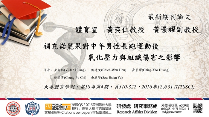 體育室黃奕仁教授及黃景耀副教授發表最新期刊論文