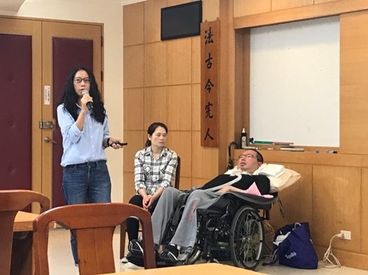 10月18日下午,健康暨諮商中心在城中校區舉辦了漸凍人講座「愛與陪伴—飛翔的力量」,邀請到台灣漸凍人協會理事長、東吳商用數學系(自97學年度起更名為財務工程與精算數學系)校友陳大謀,以及國際漸凍人聯盟理事、東吳EMBA校友屈穎為同學們演講。
