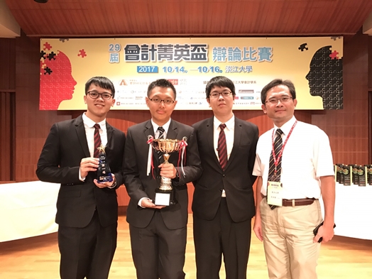 由財團法人會計研究發展基金會及會計研究月刊所主辦「第29屆會計菁英盃辯論比賽」106年10月14日至10月16日於淡江大學盛大舉行。經過三天針鋒相對的激烈競爭後,由本校會計學系榮獲團體獎冠軍及個人獎第一名,並將代表臺灣參加106年11月於大連市東北財經大學舉辦之「2017海峽兩岸大學會計辯論邀請賽」。