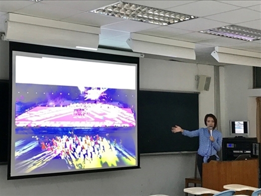 「科技串聯過去與未來,不同世代得以交流」曾為台北世大運開幕式、總統府國慶光雕展等影像設計總監的陳怡潔,帶著創新的思維和同學們分享科技如何和藝術共舞。本次講座為「方寸之間:實境互動地景藝術的進行式」的系列講座,於10月19日在第二教研大樓教室分享。
