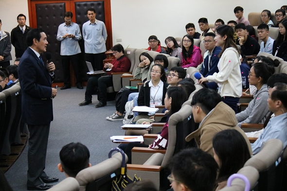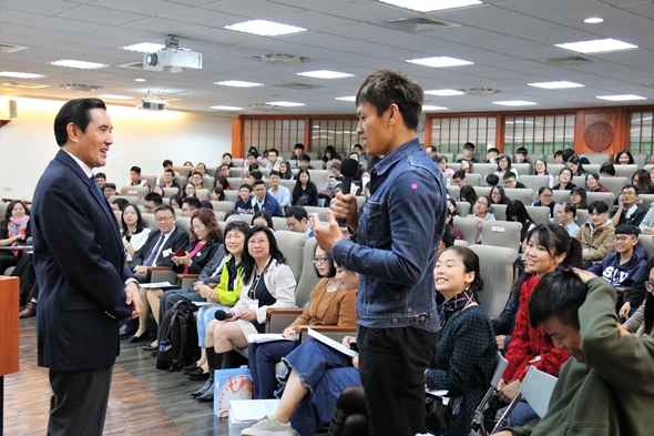 交流問答中,有同學詢問關於兩岸是否該統一的問題,馬教授回應,統一與否的問題,應該由兩岸人民決定,而非交由政治人物決定,在嚴肅話題之外,有趣的是,有同學直接向馬教授告白「好喜歡你!」,引起現場驚呼連連。