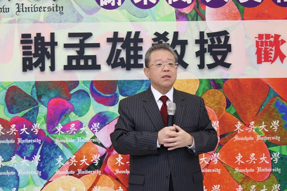 潘維大校長表示,謝孟雄先生除了在個人專業領域表現卓越之外,在藝術、人文領域亦具備深厚涵養,尤以「生活藝術」及「文化史」領域見長,且相關出版成果豐碩。他還指出,其父親謝東閔前副總統為本校法律系校友,其夫人林澄枝女士亦曾於本校英文系任教,可見東吳與謝教授淵源深厚,如今能邀請到他至本校擔任講座教授,十分榮幸。