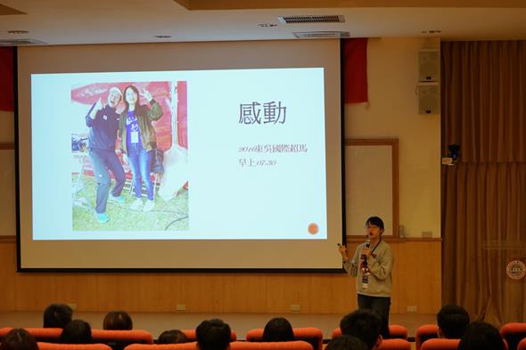 來自馬來西亞罹患腦性麻痺的選手曾志龍,一上台就笑著表示,東吳彷彿自己的娘家,每年都要參加賽事。跑步經驗豐富的他,分享自己與東吳超馬結下的緣分,還有超馬對他的重要意義。他回想起第一次報名24小時馬拉松,不顧主辦單位對他身體狀況的擔憂與試圖勸退,他選擇向自己挑戰並堅持完成比賽。