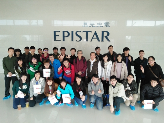 第一站是晶元光電公司—目前穩坐世界LED供應商的龍頭寶座,其主要業務是磊晶的創新設計生產,同時,與世界知名品牌協力推廣手機螢幕、筆電和電視等領域的LED應用技術。物理系77級系友、副總經理范進雍學長帶領大家進入廠房,並詳細解說LED製作過程、目前應用情形、未來應用展望以及MOCVD設備技術等。此次參訪讓同學們受益良多,不但將課堂上的「光學」、「電磁學」、「半導體物理」、「化學」等知識在參訪過程中得到應證,而且可以借此機會將心中的疑惑向范學長請益。范學長談及個人的學習經驗與工作歷程,以「重視工作態度,持續不斷學習」互勉,期許學棣們不論在職場上亦或學術研究上都應該保持「活到老、學到老」的精神,時刻握有戰力,迎接任何挑戰。
