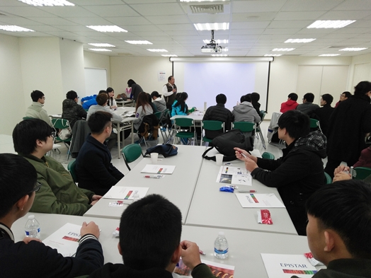 第二站是中央大學科教中心,該中心與本校物理系演喻教學發展相同,都是以整合科學教育資源、演示教具研發製作為目標。物理系77級系友、中心主任朱慶琪學姐帶領同學們瞭解實驗設計與教具製作過程中面臨的一連串疑難雜症,並啟發同學們透過不斷實驗與反覆驗證來解決問題。朱學姐透過簡單的遊戲串場,讓同學們深刻感受到生活中無處不物理,從簡單的教具中就可以發現物理世界的奧妙。她更以學習金字塔為例,表示學習不僅只有記誦,更重要的是理解、動手作,進而創新。尤其是未來的產業發展不再需要大量人力,同學們更應思考如何提高自身競爭力。