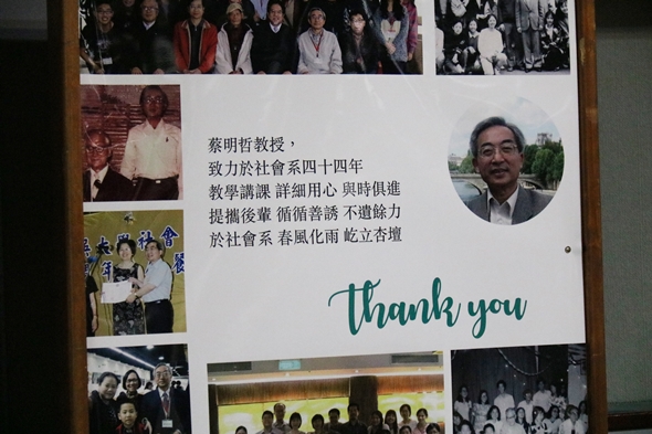 為感謝蔡明哲教授的貢獻,本系於1月5日下午在外雙溪校區國際會議廳舉辦榮退茶會,共計在校師生、畢業系友90多人一同參加,顯見蔡老師持事穩重、待人親切、行政卓越、學養深厚,廣結善緣深為士林仰重。現場亦致贈其新書《台灣漢詩日記 2012-2017 蔡明哲教授社會詩學選集》(東吳大學社會學系創系45年暨蔡明哲教授70壽慶及退休紀念文集)給每位與會貴賓。
