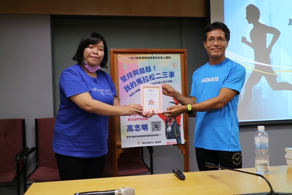年逾50的高志明選手說話幽默,因為跑步的關係讓他看起來身體硬朗,他十分鼓勵大家練習跑步,他認為,跑步可以練身體,還能找到自我。歷史系的吳同學表示,雖然他沒有練習過跑步,但是聽完高志明先生的演講後,感受到了熱情,希望之後也能像高志明一樣跑出屬於自己的人生!