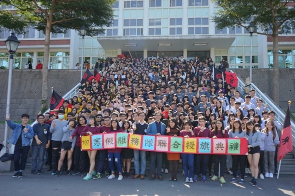 「107寒假服務隊聯合授旗典禮」於107年1月23日上午在外雙溪校區傳賢堂熱鬧登場。典禮以「尋找失落心銀島」為主題,傳達出團隊合作的重要性,更是借16世紀著名探險家麥哲倫的語錄穿越時空為同學們帶來前行的力量:「生活的真諦在於熱情。」