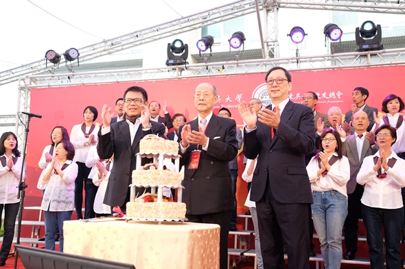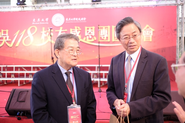 潘維大校長感謝校友們長期以來對母校的積極投入,使學生們有更優質的學習環境。校長表示,隨著社會對跨領域人才的需求不斷增長,期待東吳能培育出適應不同領域的年輕人,並鼓勵學生投入不同研究領域。提到數據研究及人工智慧是目前發展的趨勢,校長也強調,未來各學系也將成立人工智慧研究中心,在軟硬實力方面持續努力,帶領東吳邁向高峰。校友總會劉吉人理事長則肯定東吳多年辦學有方,感謝眾多校友對母校的支持。潘維大校長、王紹堉董事長和劉吉人理事亦在會中攜手切下東吳118歲生日蛋糕,祝福東吳大學生日快樂。