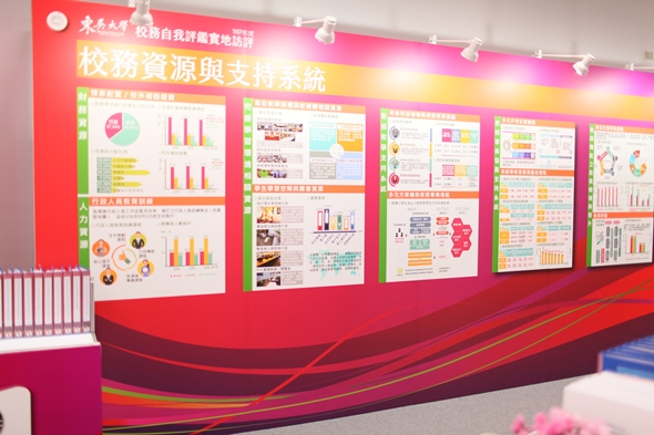 訪評當天首先由本校潘維大校長透過簡報說明本校自我定位與發展願景及「校務治理與經營」、「校務資源與支持系統」、「辦學成效」、由評鑑委員進行資料檢閱,深入瞭解本校校務辦理情形。資料檢閱後,則由校長等一級主管陪同委員分成2組參訪本校特色空間,如在文舍由社會系劉維公老師解說明日聚場的運作、化學系王榮輝老師在未來教室進行翻轉教學演示、教師教學發展組丁后儀組長利用虛擬攝影棚說明本校發展數位教學情形、學生學習資源組莊媖琁組長及教學科技推廣組張彥之組長在線上自學室說明學生自學環境、設備及校務資料分析中心架構及分析成果等、圖書館讀者服務組李明俠組長及張碧晶組員展示本校密集書庫使用之設備以及由音樂系系主任彭廣林教授介紹本校具國際水準的專業展演場所松怡廳。