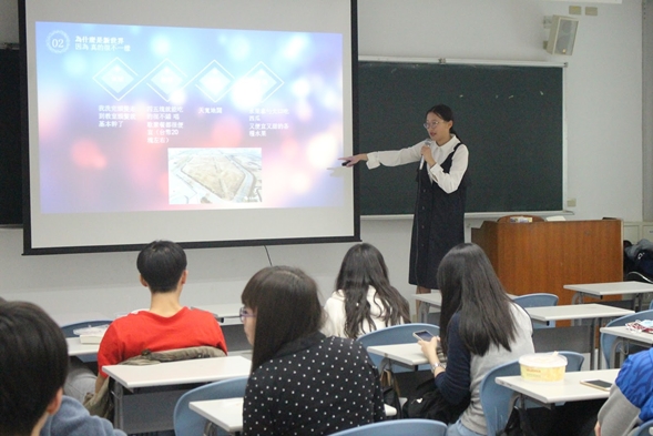 本校國際與兩岸交流事務處配合國際周系列活動,在外雙溪校區舉辦一連五天的交換生分享會,3月12日邀請到來東吳交換的大陸學生閆歡同學以及日文系的林佑蓁同學,分享在蘭州大學及北京外語大學的在學經驗。