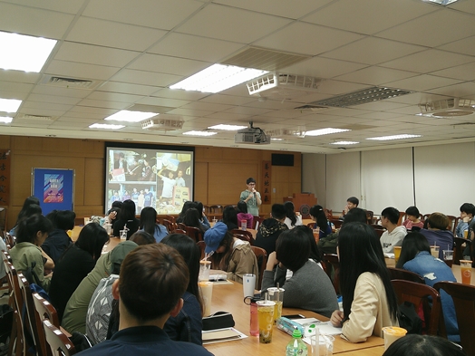 「走進需要自己的地方服務,初心很重要。」阿甘老師帶著爽朗笑容看著台下,投影幕上的照片,是他到柬埔寨和當地學生的合照。他們的團隊相信,改變一個地方要從本質做起,於是想透過教育來解決問題。早上教當地學生讀書識字,下午帶他們做田野調查。台下同學這時問了阿甘老師,移植器官後,身體狀態並不好,怎麼有勇氣去做志工呢?老師開朗地笑著說,冒險看似危險,但真正危險的,是你以為的舒適圈。