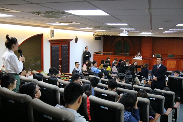 東吳大學自105學年度起禮聘前總統馬英九先生以榮譽無給職方式擔任「嚴家淦法學講座教授」,以每月1場不同主題的演講課程,與本校同學互動對談。本次馬英九講座教授本學期的第2場演講以「死刑存廢與國際法」為題,於4月17日上午在本校城中校區崇基樓實習法庭開講,校內師生報名踴躍熱情參與,現場座無虛席。