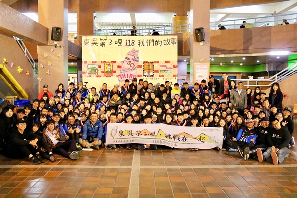 「東吳第3哩,挑戰在一起!」面對自己的親朋好友,118單車環島的學員們在外雙溪校區最後一次喊著口號,為12天的環島之旅畫下句點。本校第6屆百人單車環島活動於107年3月27日至4月7日進行,一共號召百位在校學生挑戰單車環島,此外校友總會今年也特別號召校友加入,舉辦第一屆校友單車環島活動,雙方採反方向進行環島並於高雄會師,也讓環島中的高雄之夜相當熱鬧。