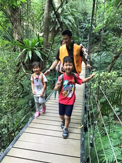 沿路可以看見原始亞熱帶雨林植物,常綠闊葉植物群以及少見的板根和幹生花植物、大型藤類、蕨類、地被植物等等,各式各樣昆蟲,而行經彩紅橋區域時,此區氧氣含量高達20,000ppm/m3,同仁除大口深呼吸外,放眼望去還可一覽綠意昂然,令人心曠神怡,同仁們對於體育室悉心籌辦本活動均表示肯定與感謝。