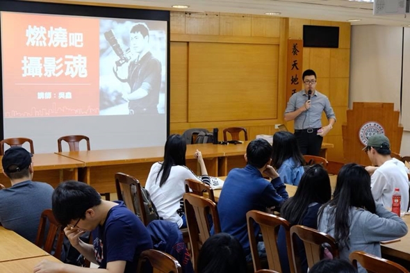 「你想變成什麼樣的人?」ヽ「為什麼喜歡攝影?」107年5月9日晚間蘇州攝影學會邀請知名攝影師吳鑫至城中校區2123會議室演講。吳鑫先生以自身經歷,向同學們分享自己面對攝影以及生活的態度,也一一解惑同學們對攝影上、生活中的疑問。