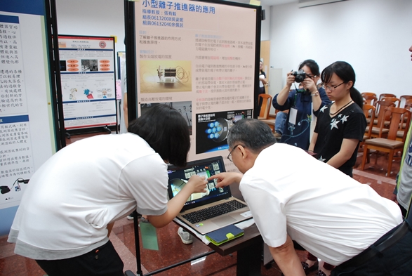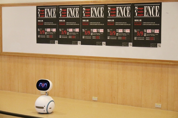 決賽現場展示除展示參賽同學們的作品外,也展出物理系教學研發中心的多項教學成果,現場一旁也擺放著機器人ZENBO與同學互動,ZENBO不僅可以與人對話,還會跟著人進行移動,讓同學們對人工智慧有更多的認識。物理系三年級的劉諭庭與林莉容同學表示,物理系在大一都會有自製實驗,成果展讓他們辛苦做一學期的實驗成品有機會展示,創意競賽則是讓他們把腦中的想法具體實現。