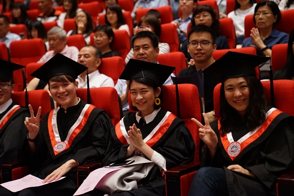 典禮中,法學院博士班黃鼎軒同學代表畢業生上臺致詞時說,法律人常背負著眾人的期待與目光,但其背後的努力卻是很難被看見,讓法律系畢業生們都深有同感。而他也提到,令他印象深刻的社會議題「小燈泡事件」中受害人父母聲明稿的一句話「生命本身沒有意義,是人賦予生命意義,何嘗司法程序本身不是沒有意義,是人賦予它意義」與畢業同學們共勉之。