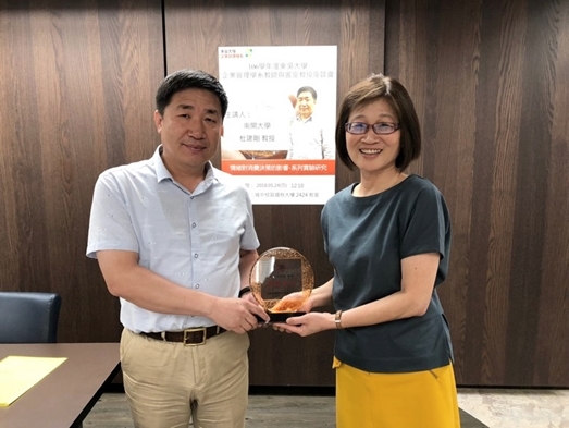 在一個半小時的座談會中,教師間交流互動熱絡,並由劉美纓主任代表系上師生致贈紀念品,期許能藉由此次來台講學,為未來兩校的合作及交流奠下更深厚的基礎。