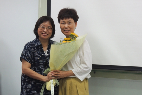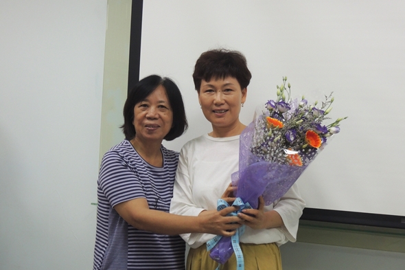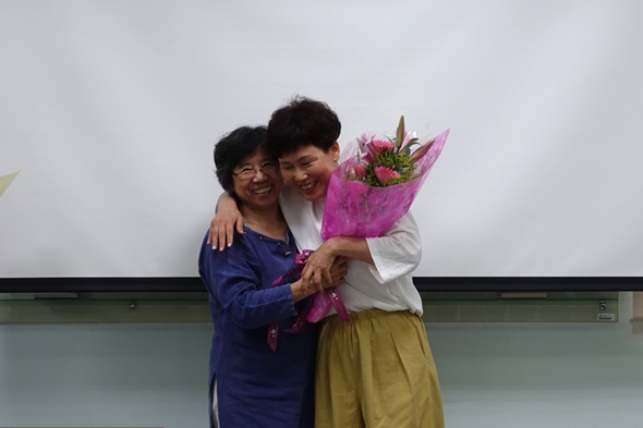 在致詞時,宋老師一度激動哽咽而無法說話,除感念微生物學系這個大家庭對她的支持與包容,同事之間總是真誠以待,才能讓她本著對系的熱愛,全心投入工作,持續努力而不懈怠,直到現在得以歡喜退休。尤其感謝曾惠中、黃顯宗及趙維良三位老師,無論是當初在職進修或是剛回到系上初期,三位老師對她的全力支持;另感謝獻花的四位美麗的女老師相知相惜,交心交情;最後感謝可愛又認真的學生們,因為有他們熱切的回應,才會鞭策自己繼續往前,也是進步的最大動力。遺憾的是為了家人,自己必須選擇在這時候離開,也希望學系教職員能夠諒解。