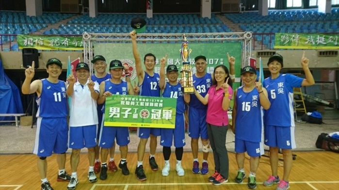 在劉義群教練精準的運籌帷幄、東方介德主任強力的進攻搭配全體隊員聯手防禦下,四天中以完美的五戰全勝佳績勇奪丁組冠軍!這也是東吳大學教職工籃球隊隊史上第八座冠軍,可喜可賀!