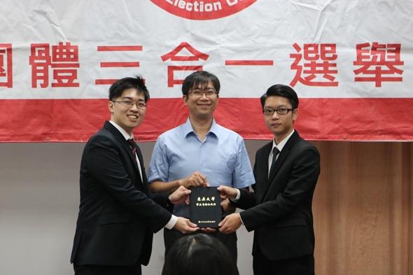學生自治研習營除了講座、分組討論外,還於戴氏基金會會議室舉辦了「學生自治團體交接典禮」,學務長蕭宏宜、群美中心主任廖芝萱等師長出席了典禮,並見證學生自治法規交接與各系學生會會長印信交接。希望新一屆幹部們不負學校與學生的期待,在服務他人的同時實現自我成長。